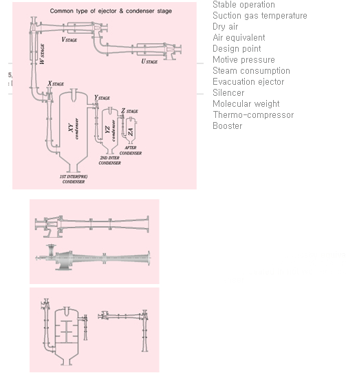 Five stage and six stage steam ejector are commonly used for special process and space research field, and vacuum metallurgy process such as RH-OB degassing unit at POSCO.